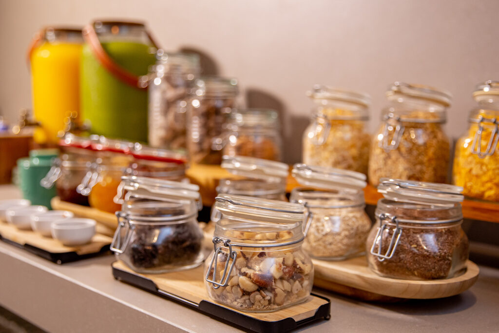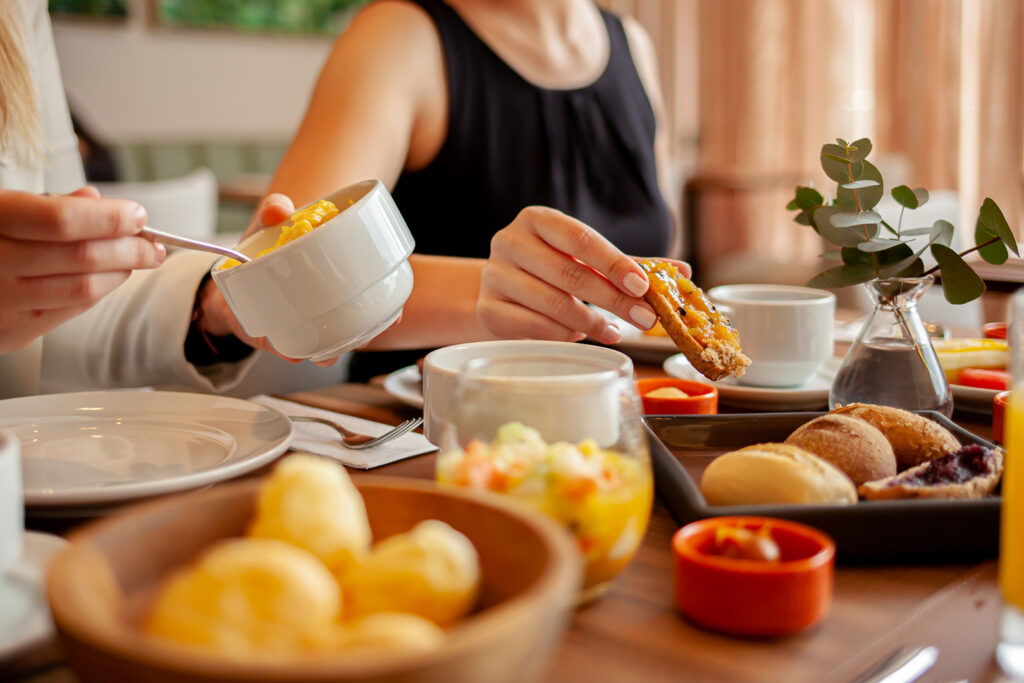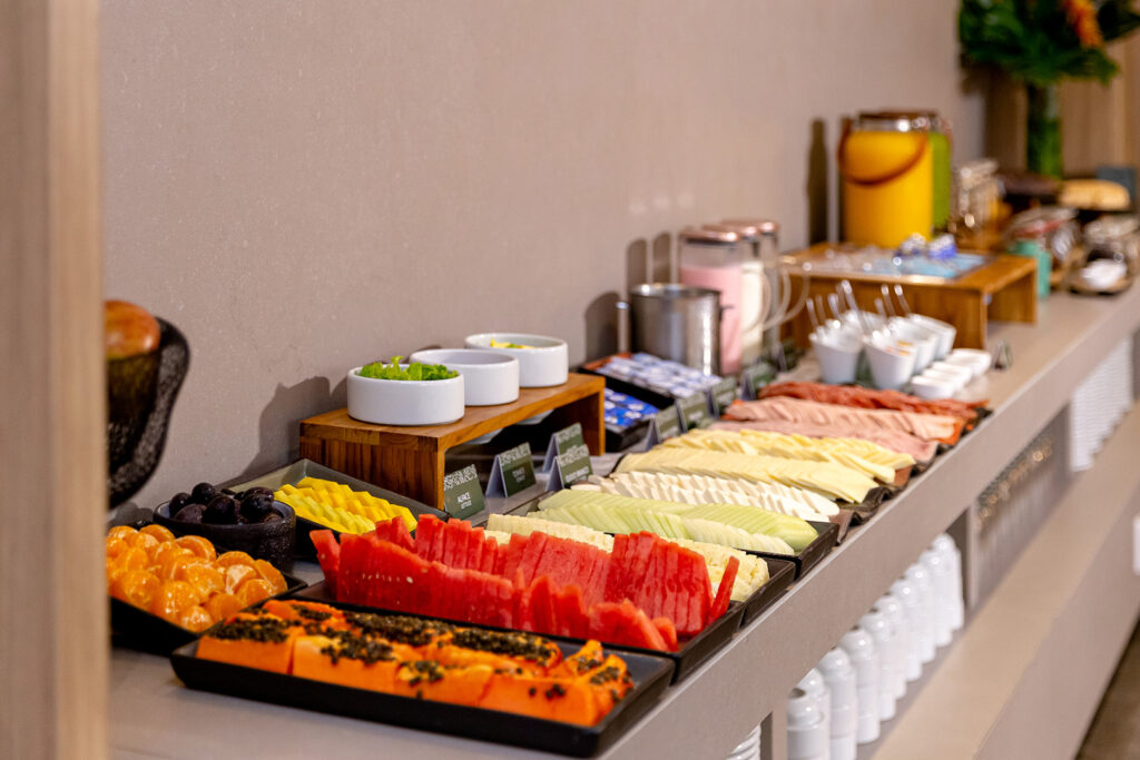 O café da manhã se destaca pela variedade e qualidade, com opções que vão de pães frescos, frutas, bolos e croissants a preparos quentes, bebidas especiais e alternativas para diferentes restrições alimentares. Tudo servido em um ambiente contemporâneo, elegante e acolhedor. Perfeito tanto para começar o dia com tranquilidade quanto para encontros de negócios ou momentos especiais.